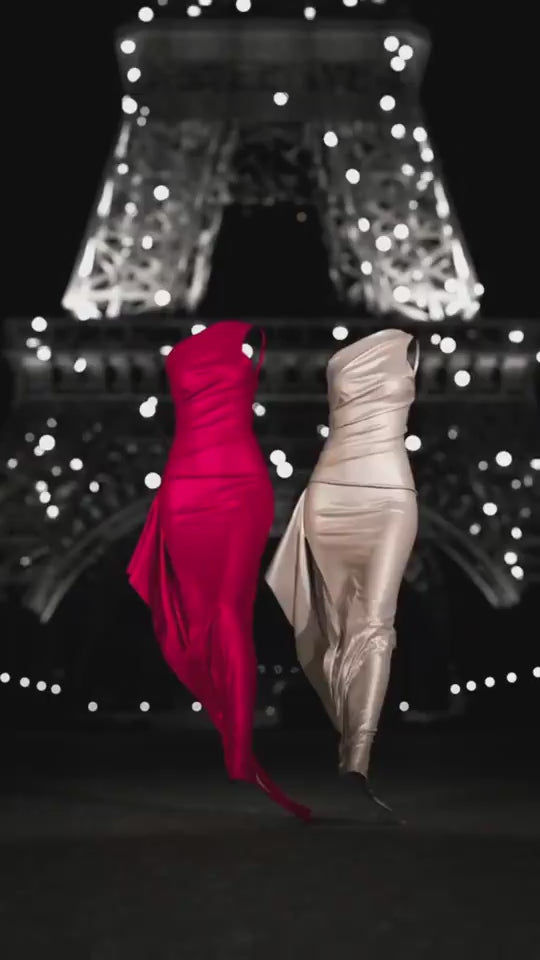Sexy One-shoulder Backless Slit Dress Summer Elegant Slim-fit Solid Color Satin Dresses For Women